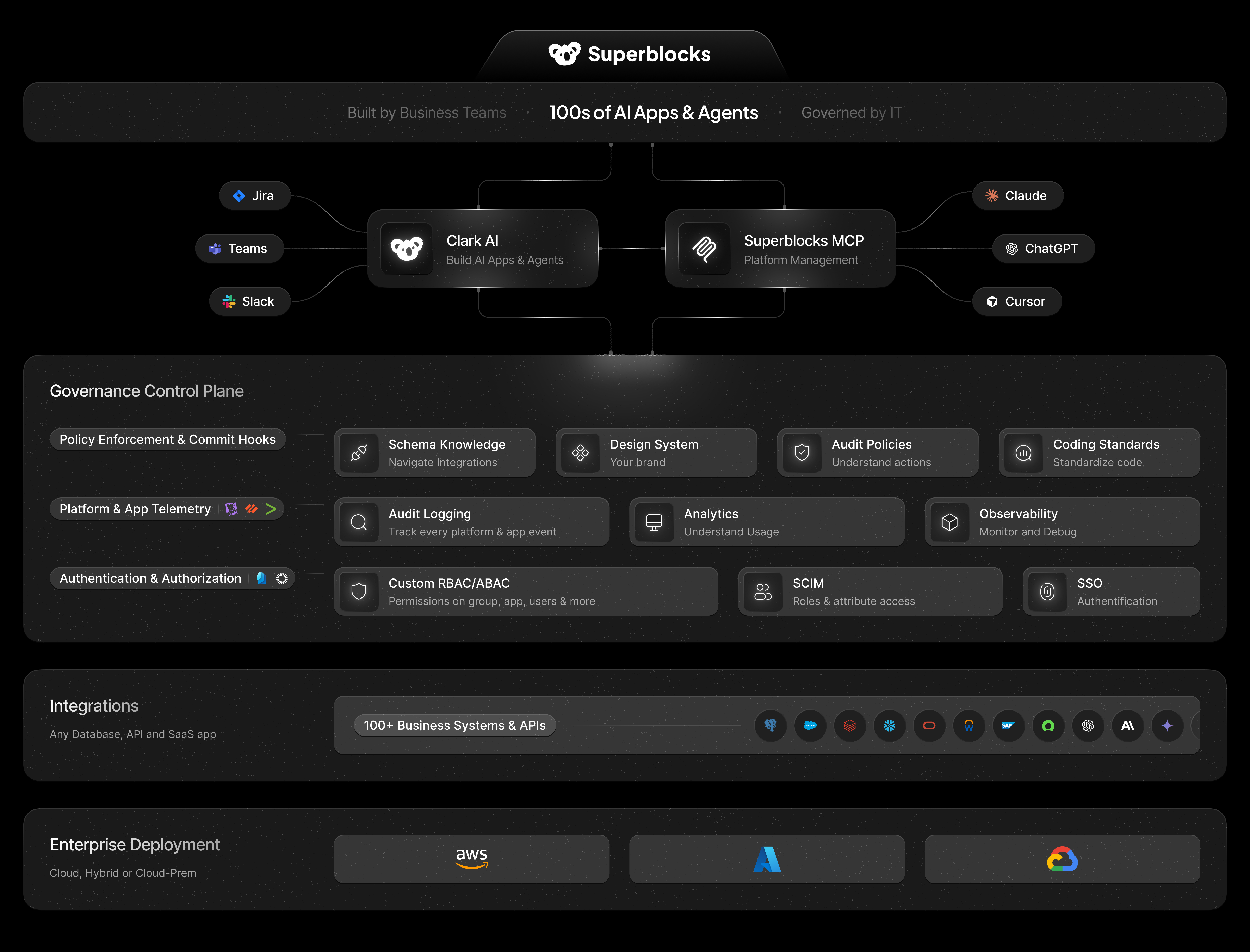 Admins centrally manage integrations and control access across development, staging, and production environments. Permissions can be enforced using roles from your SSO provider (such as Okta or Entra) or custom roles defined in Superblocks, and are consistently applied across all applications and integrations.